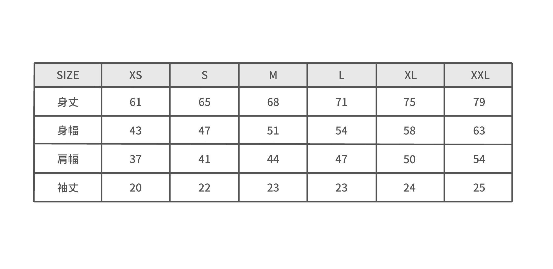 Size:着丈 / 身幅 / 肩幅 / 袖丈