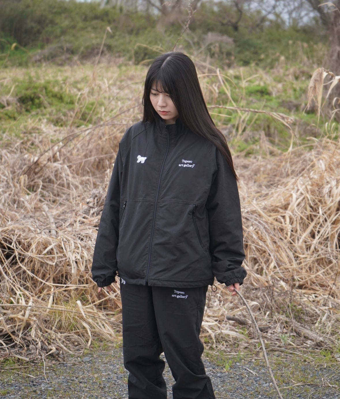 裾にかけて緩いテーパードをかけたトラックパンツ。