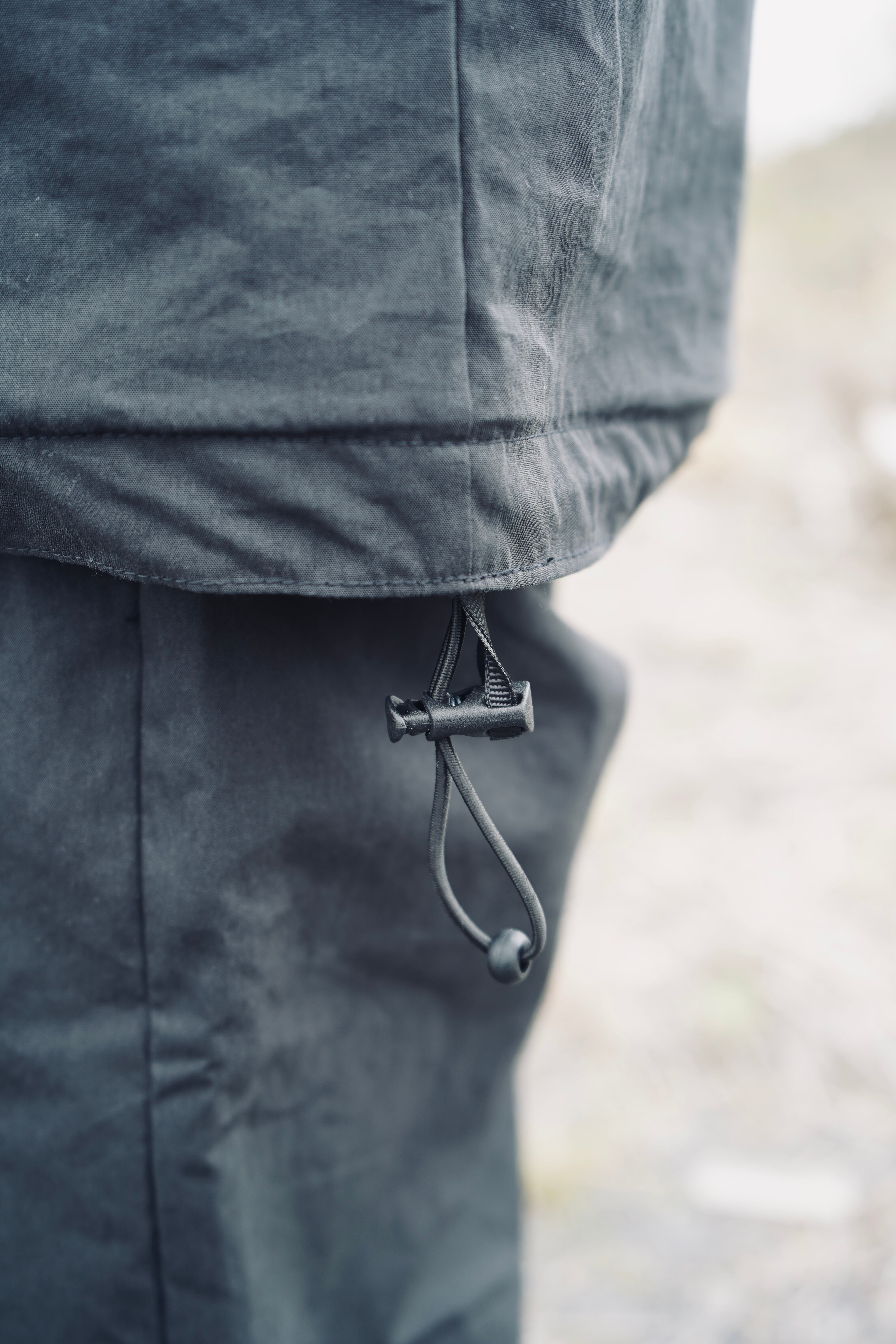 ドローコードは内側に配置することでシンプルなシルエットに、